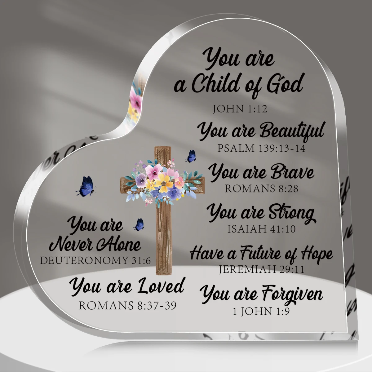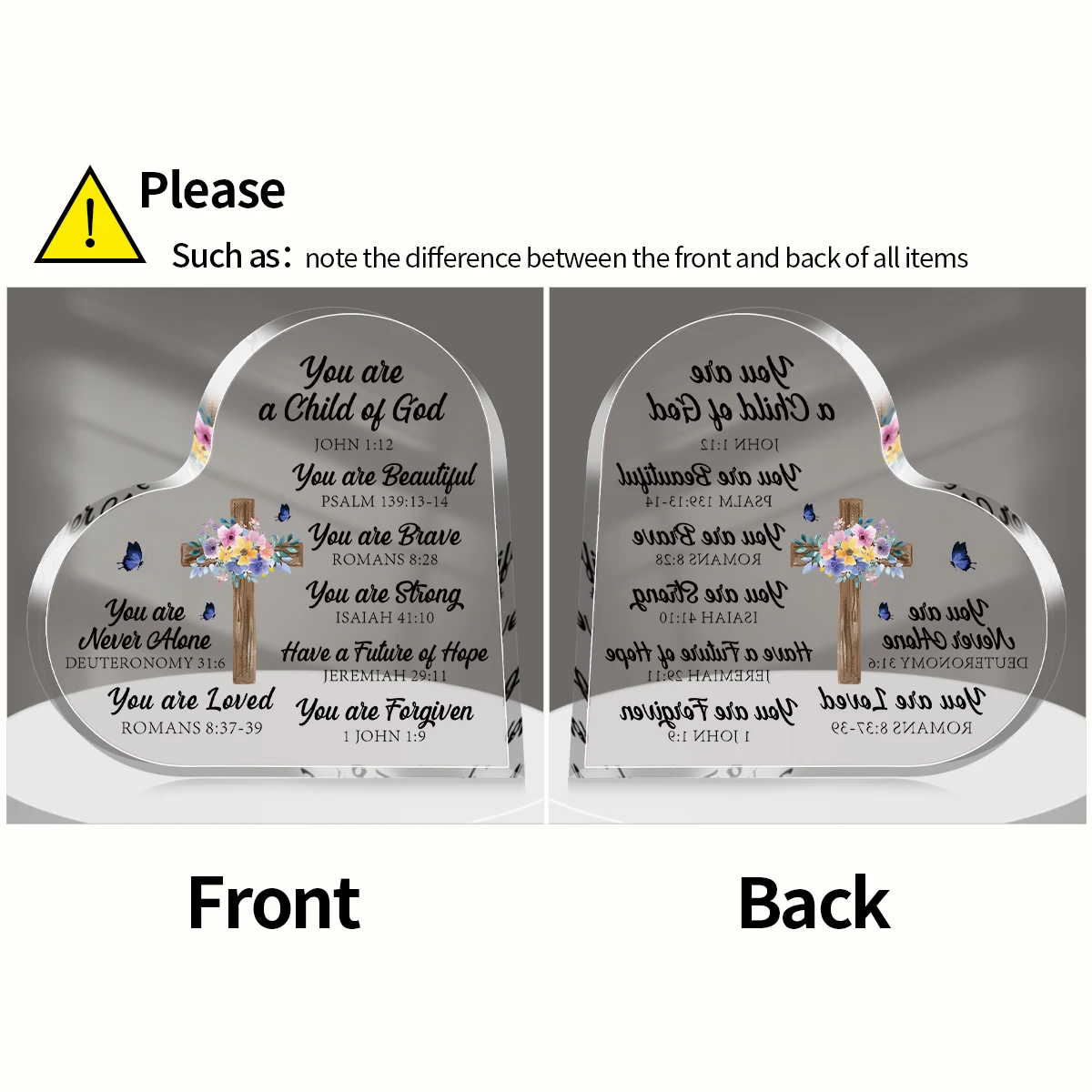 Show your love and faith with this Christian Acrylic Heart Plaque, a beautiful and meaningful gift for women, friends, and family. Featuring an inspirational Bible verse and heartfelt prayer, this elegant keepsake serves as a daily reminder of God’s love and encouragement. Crafted from high-quality transparent acrylic with a smooth heart-shaped design, it adds a touch of grace to any home, office, or prayer room decor. Perfect for birthdays, encouragement gifts, Mother’s Day, Christmas, or religious celebrations, this plaque makes a timeless expression of faith and inspiration.