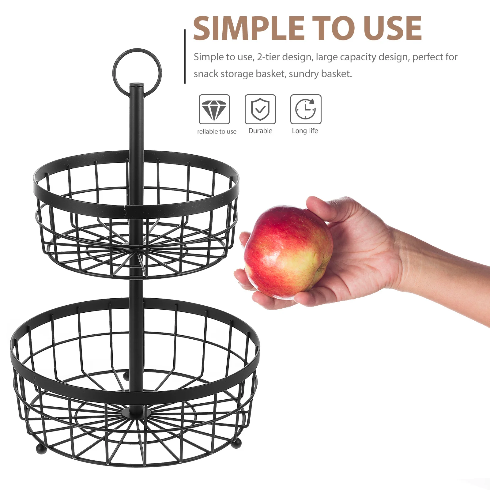 Organize your kitchen in style with this 2-tier metal fruit and vegetable basket. Crafted from durable iron wire, it provides sturdy and long-lasting support for fruits, vegetables, snacks, or kitchen essentials. The two-tier design maximizes vertical space, keeping your countertop neat and clutter-free. Its sleek, minimalist construction complements any kitchen décor, while the open wire design promotes airflow to keep produce fresh longer. Perfect for home kitchens, dining areas, or even pantry organization, this versatile rack combines practicality with modern style.