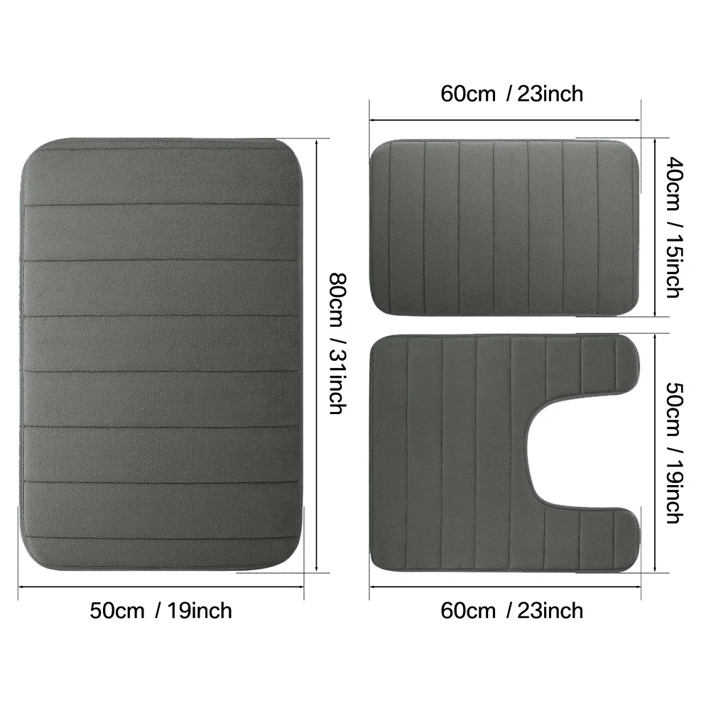 The non-slip backing keeps each rug securely in place, preventing sliding on smooth bathroom floors. Perfect for use around the bathtub, shower, and toilet, this set provides full coverage and added comfort in every corner of your bathroom.