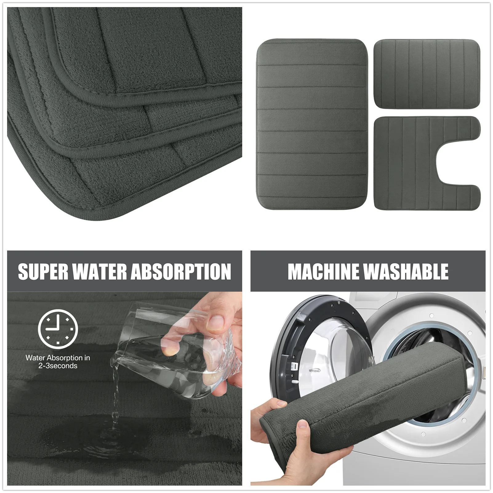 Easy to care for, all three mats are machine washable and quick-drying, ensuring long-lasting freshness and durability. Ideal for homes, hotels, dorms, and guest bathrooms, this rug set combines premium comfort with modern functionality for a cleaner, cozier space.