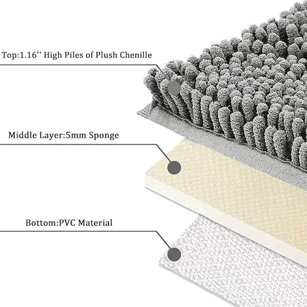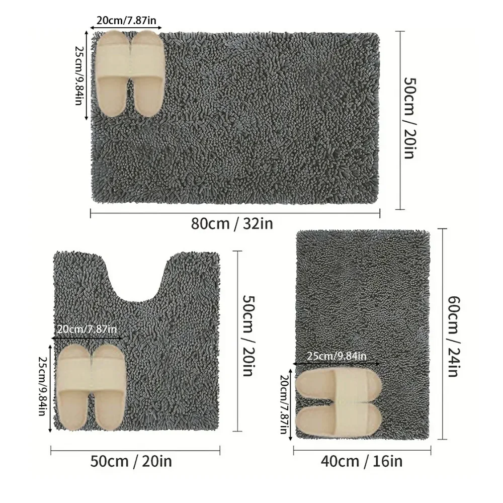 Upgrade your bathroom comfort and safety with this 3-piece Super Absorbent Bathroom Mat Set. Each mat is crafted with high-density absorbent fibers that instantly soak up water, keeping your floors dry and slip-free. The non-slip backing ensures the mats stay firmly in place, making them ideal for use by the shower, bathtub, sink, or bathroom door.