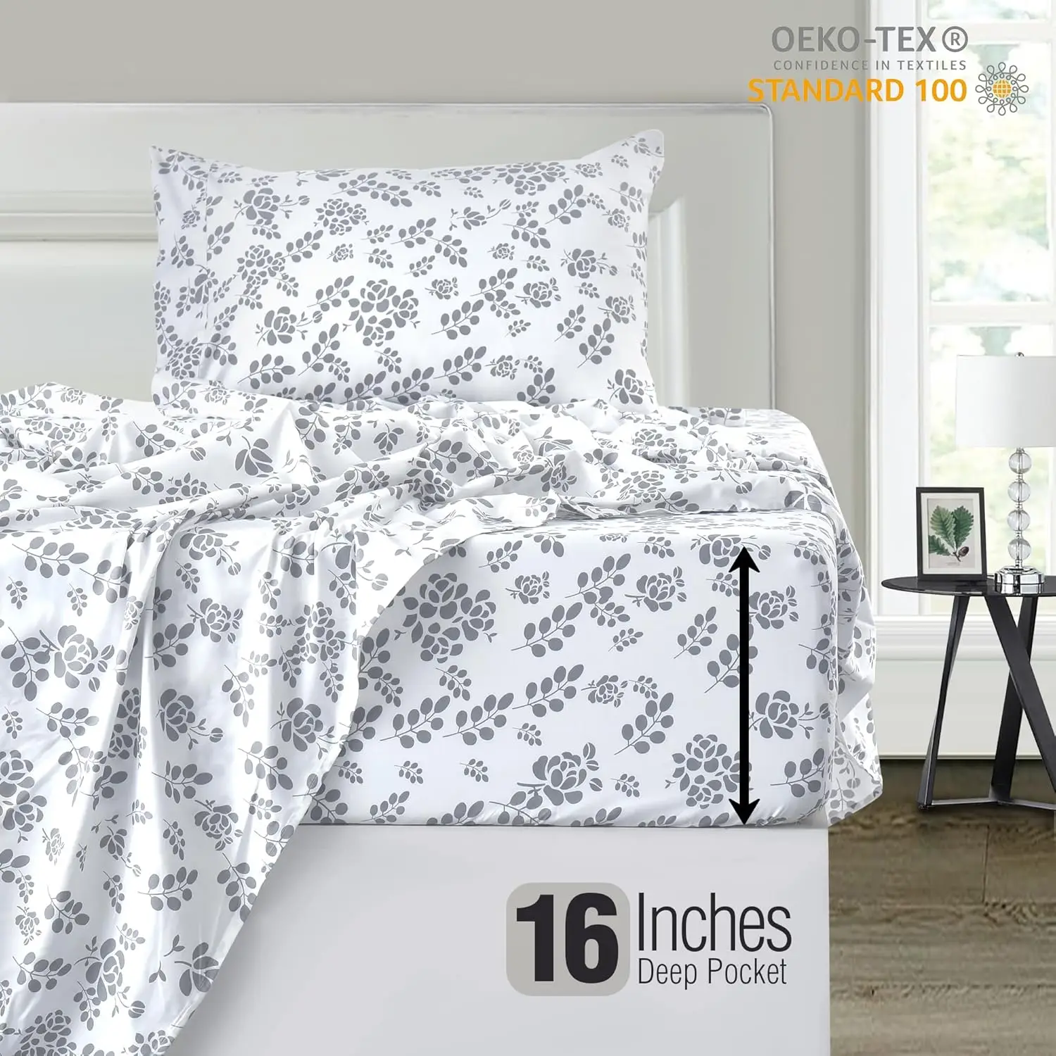 Add a touch of elegance and comfort to your bedroom with the Lux Décor 4-Piece Floral Sheet Set. Made from premium soft microfiber, this luxurious bedding set offers a silky-smooth texture that feels gentle against your skin. The wrinkle-free and fade-resistant fabric keeps your bed looking fresh and stylish every day, while the charming floral print brings a timeless, elegant look to any décor.