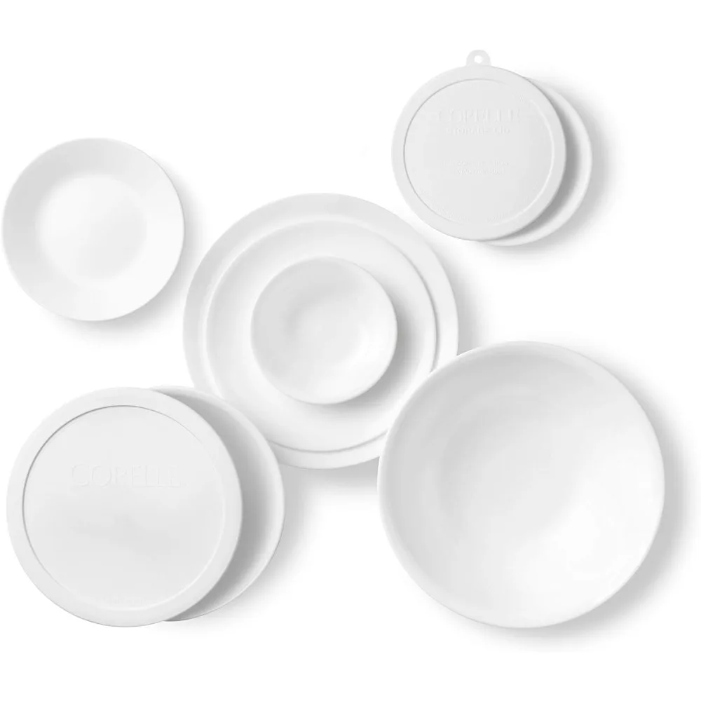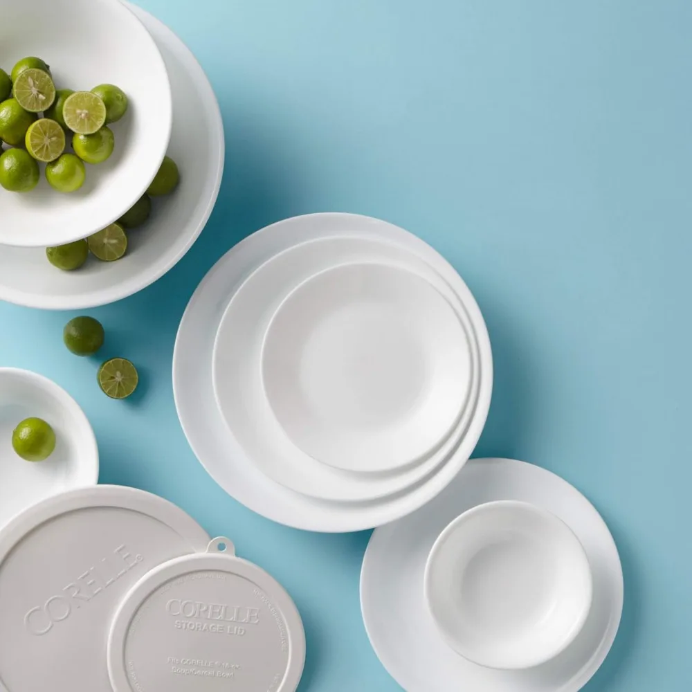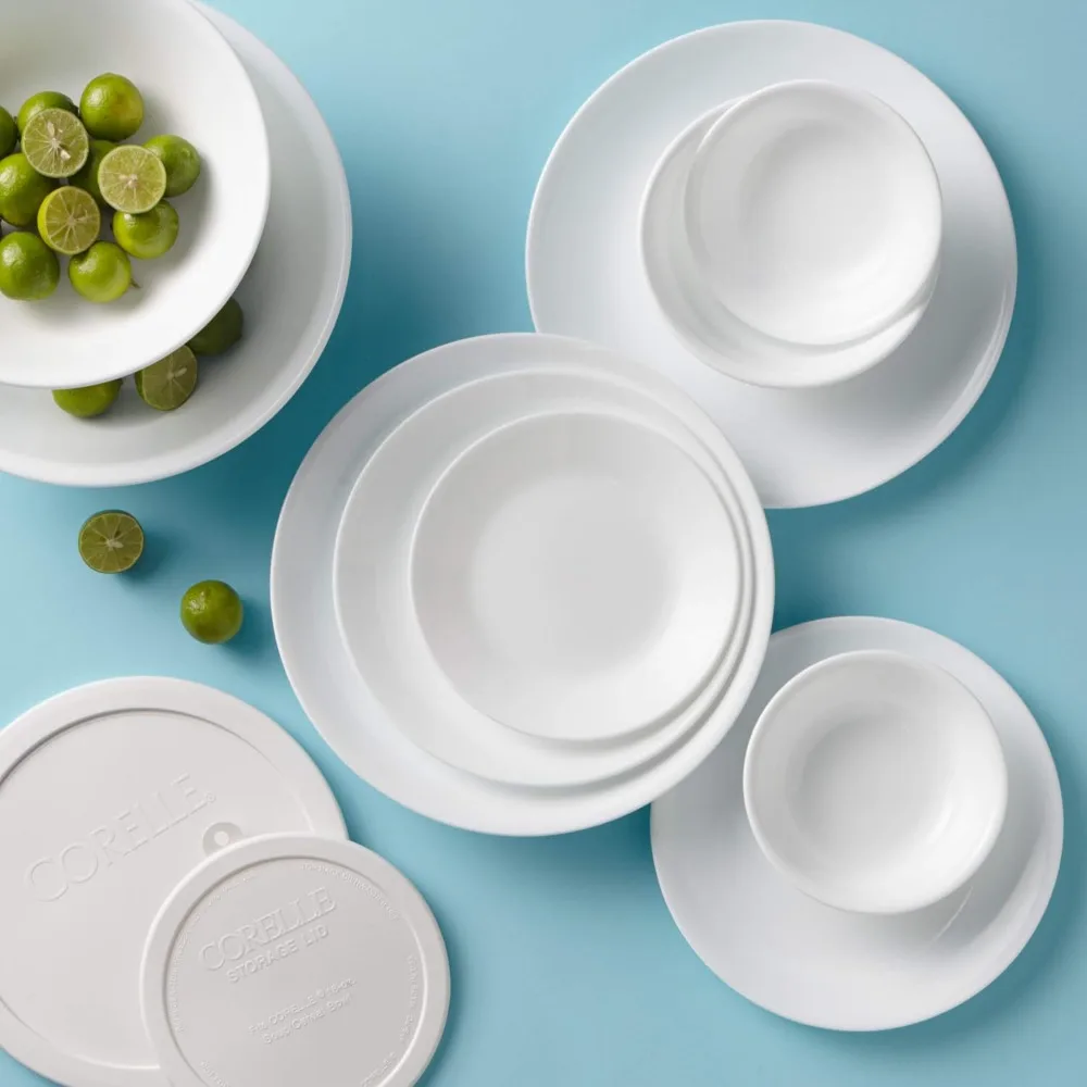 Serve in style with this 78-Piece Dinnerware Set for 12, featuring elegant Winter Frost White glass plates and bowls. Designed with a modern, minimalist aesthetic, this set is perfect for family meals, entertaining, or special occasions.