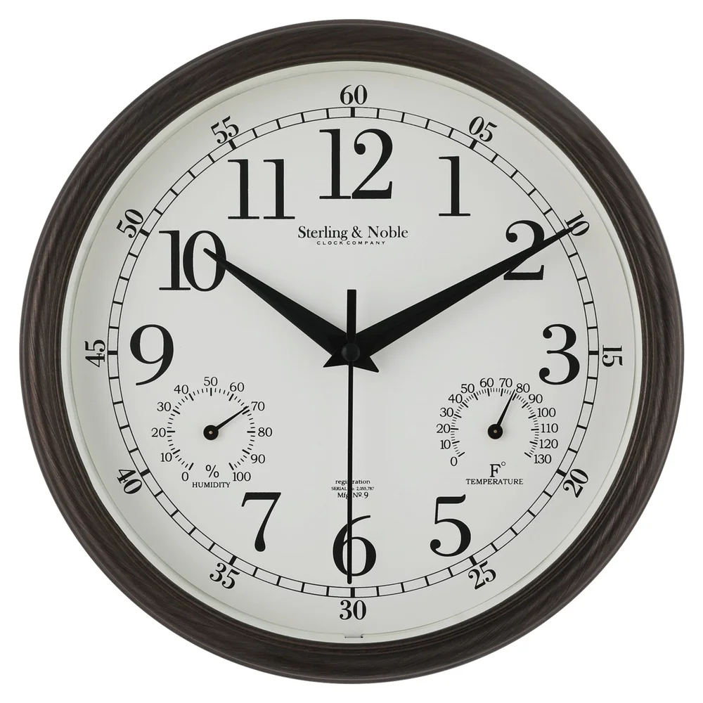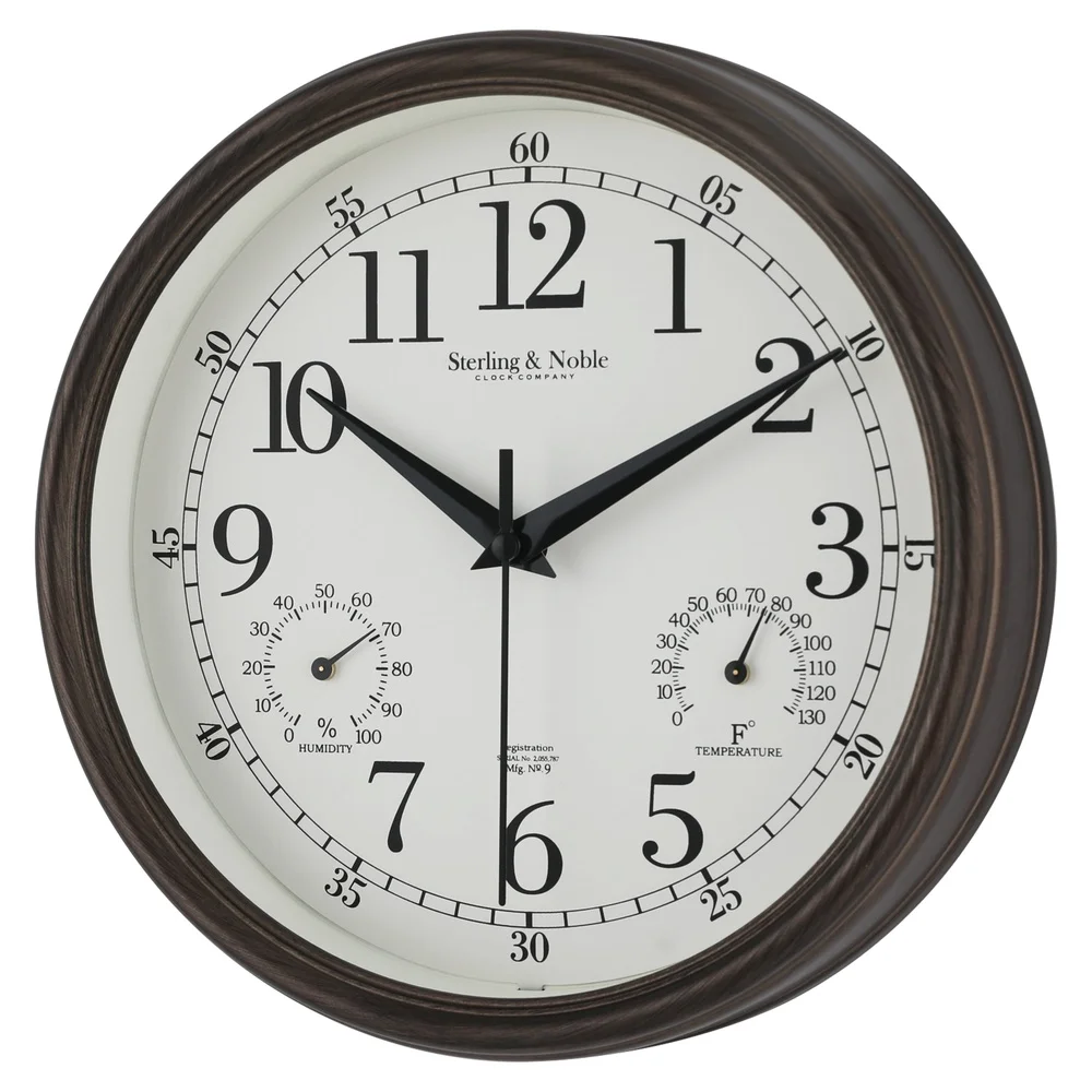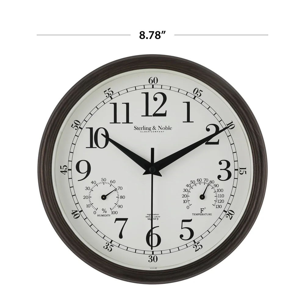 Built with a lightweight yet durable frame, this clock is designed to withstand everyday indoor or sheltered outdoor use. The quartz analog movement ensures accurate, reliable timekeeping, while the built-in thermometer and hygrometer provide real-time temperature and humidity readings at a glance.