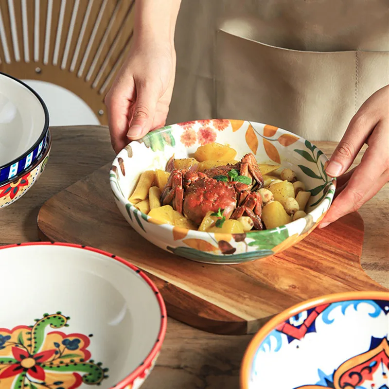 This 8″ Exquisite Ceramic Salad & Ramen Bowl is crafted with durable underglaze techniques to ensure a vibrant, long-lasting finish. Its deep shape makes it perfect for salads, ramen, pasta, rice dishes, and hearty soups.