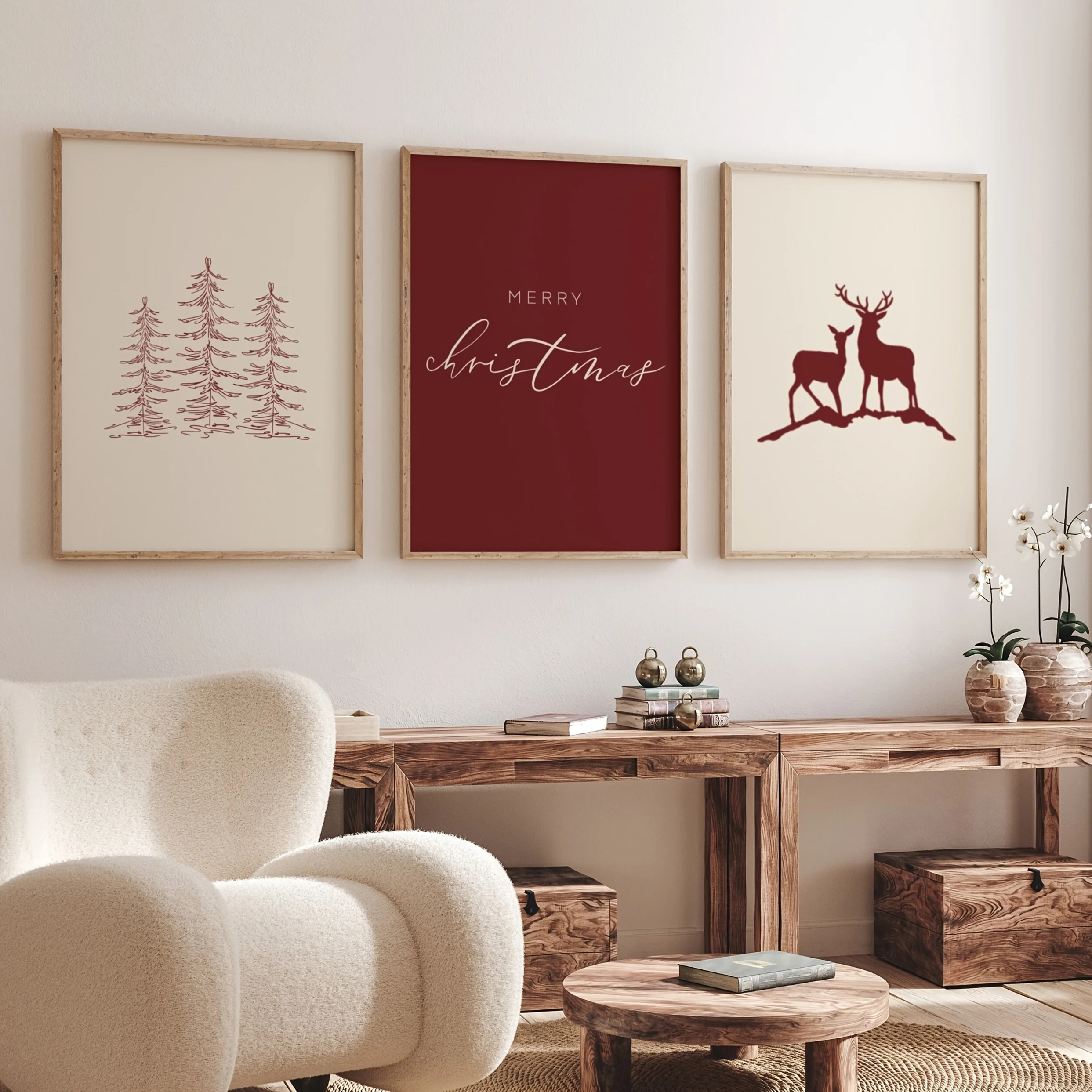 The Beige and Red Christmas Tree and Elk Canvas Print adds a touch of modern elegance and festive warmth to your holiday decor. Featuring a minimalist Christmas tree and elk design in soft beige tones accented by classic red details, this wall art perfectly blends simplicity and seasonal charm. Its refined style complements modern, Scandinavian, and neutral-themed interiors, making it a beautiful addition to your living room, dining area, or entryway during the holiday season.