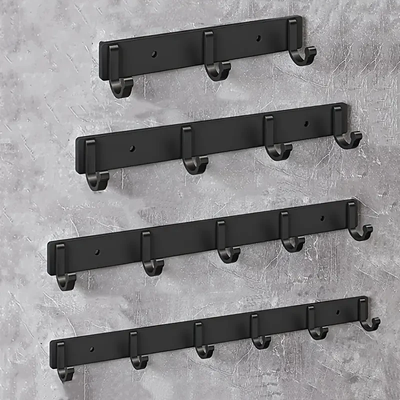 Keep your bathroom or hallway organized with this modern black aluminum wall-mounted coat hook. Sleek and durable, it is perfect for holding towels, bath towels, coats, or clothes, providing a stylish and practical storage solution.
