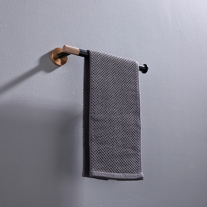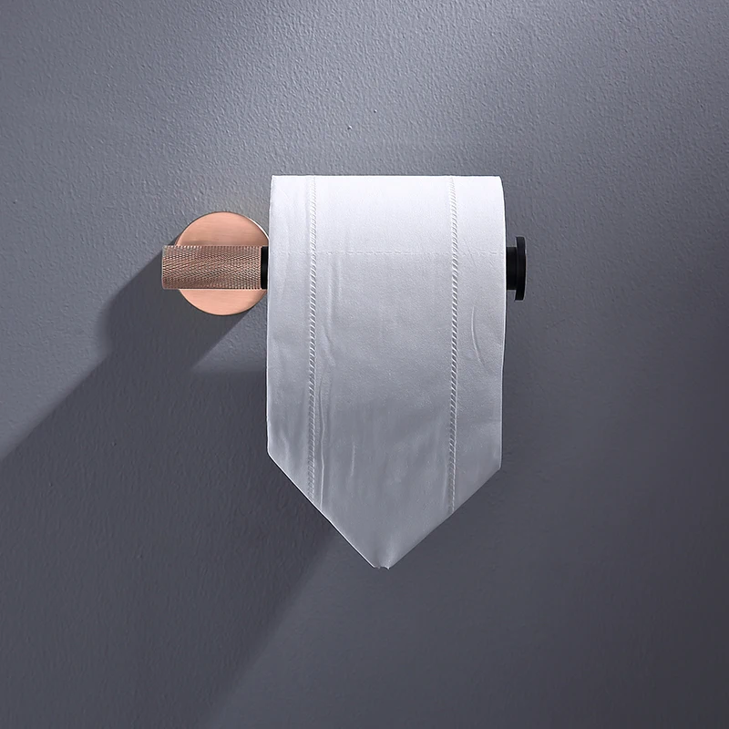 Upgrade your bathroom with this Black Rose Gold Wall-Mounted Accessories Set, combining style and functionality. The set includes a soap dish, towel ring, robe hook, and toilet paper holder, offering a complete solution to keep your bathroom organized while adding a modern, luxurious touch.