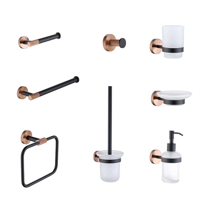 Crafted from durable, rust-resistant materials, each piece is built to last in humid environments. The sleek black rose gold finish adds elegance to contemporary and minimalist interiors, making it perfect for bathrooms, kitchens, or powder rooms. Easy to install and maintain, this set provides both practicality and sophistication for your home.