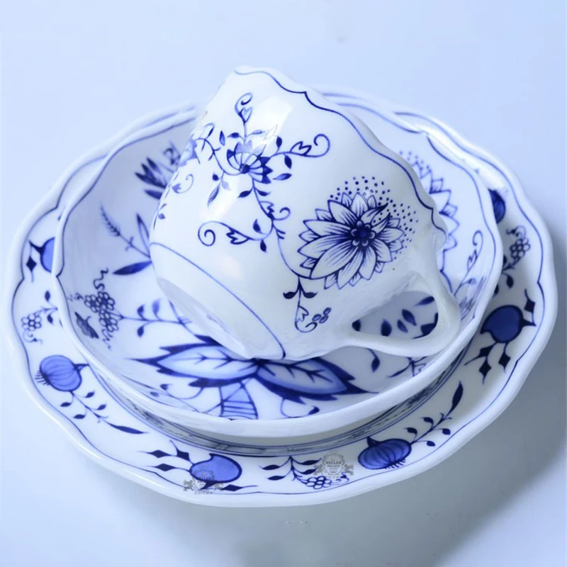 Crafted with classic Blue Onion artistry, this set adds charm and elegance to your kitchen or café service. Packaged in a gift box, it makes a thoughtful present for coffee lovers and collectors of timeless drinkware.