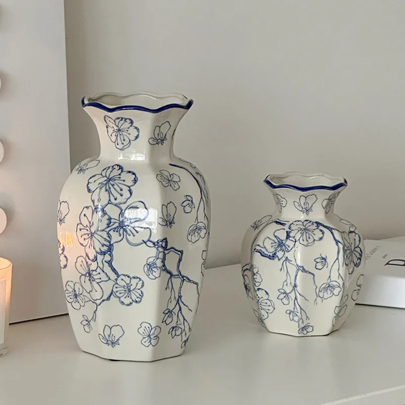 Add timeless charm to your home with this blue and white porcelain ceramic vase. Inspired by traditional Chinese design, it’s perfect for displaying flowers, plants, or as a decorative accent for living rooms and shelves.