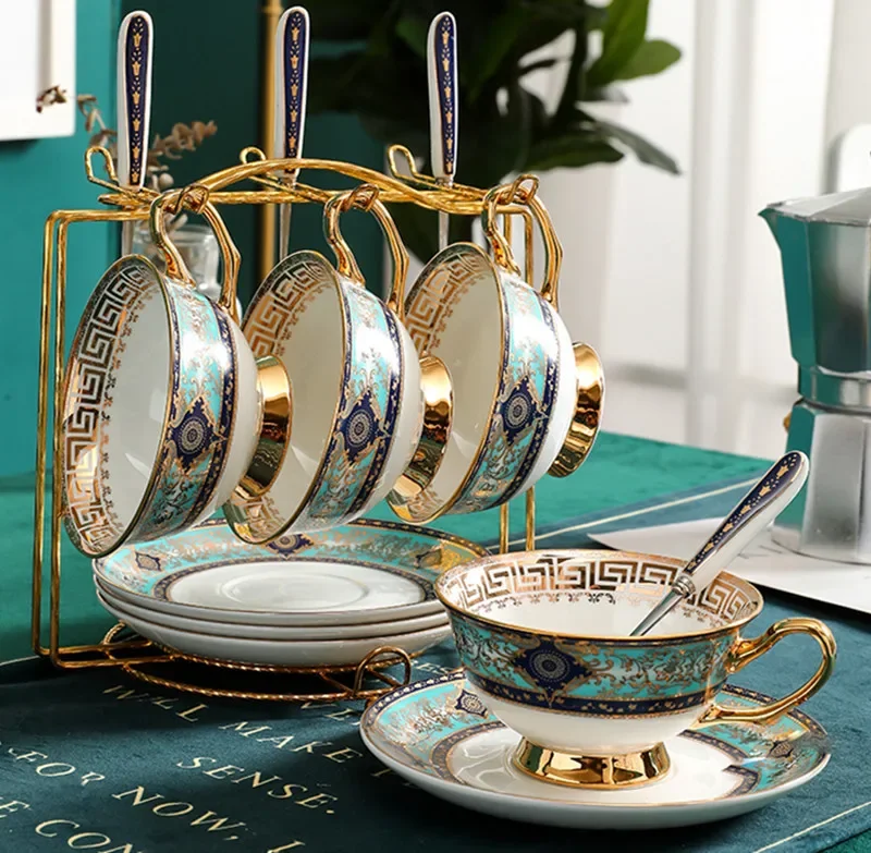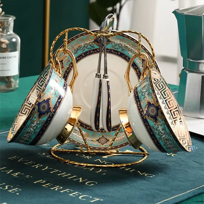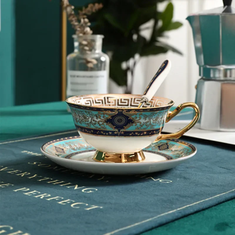 Classic Green Bone China Coffee Cup & Saucer Set – Luxury Porcelain Tea Set, Elegant Ceramic Drinkware