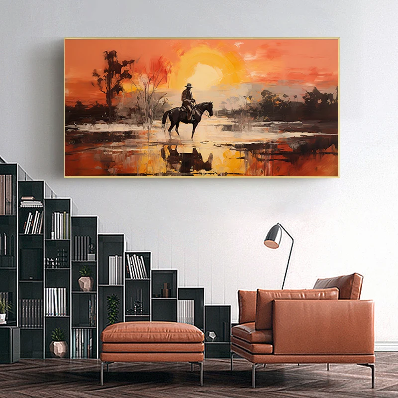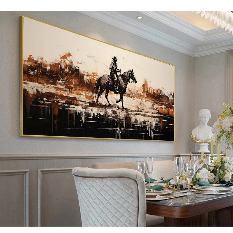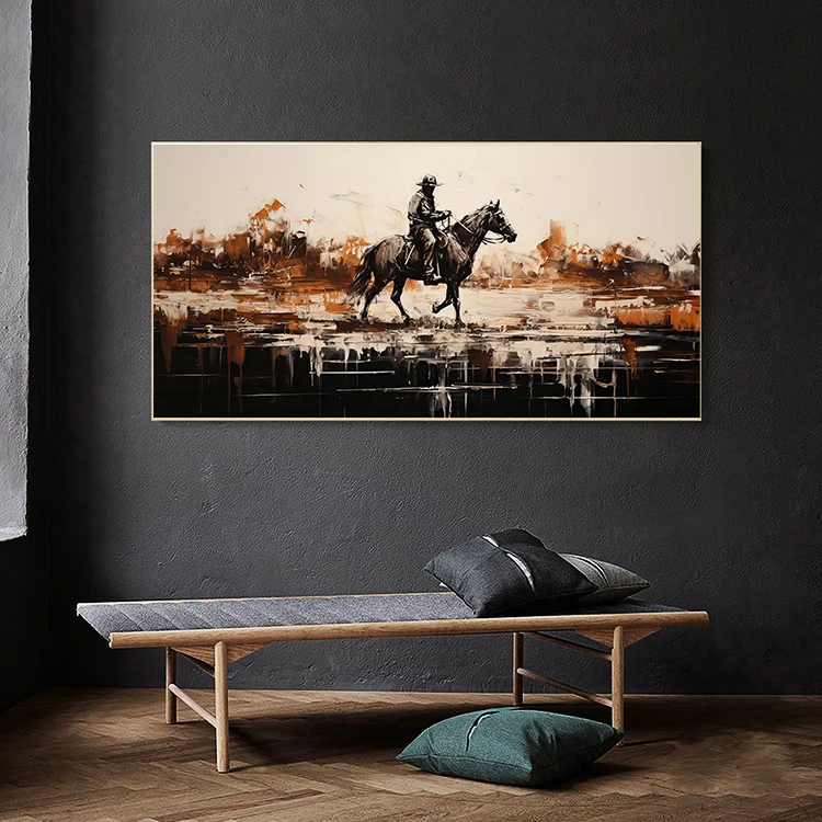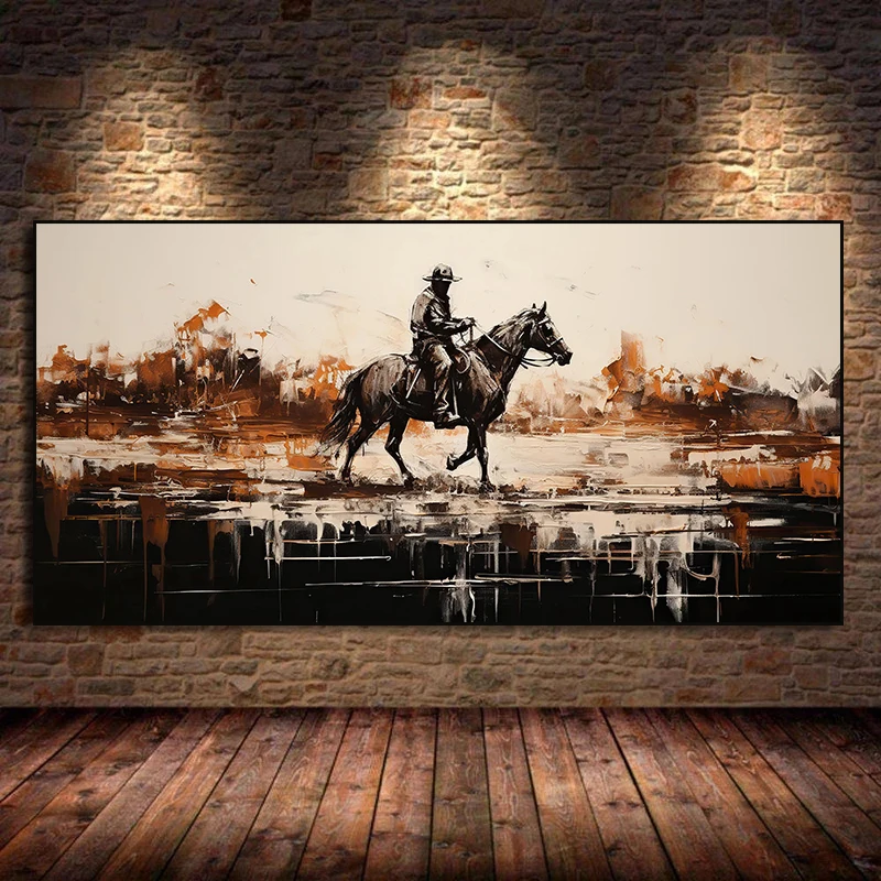 Bring the rugged spirit of the Wild West into your home with this Cowboy on Horse Canvas Wall Art. Featuring a bold depiction of a cowboy riding across the open plains, this Western-style painting captures freedom, adventure, and timeless Americana charm. Perfect for living rooms, offices, cabins, or rustic home decor, this high-quality canvas print adds warmth and character to any wall. Its detailed design and vintage tones make it an ideal choice for Western art lovers or anyone looking to add a touch of frontier nostalgia to their space.