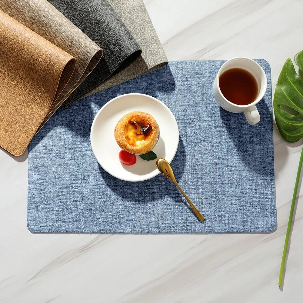 Enhance your dining experience with this dual-sided PU canvas texture placemat, designed for both style and durability. Measuring 43×30 cm, it offers generous coverage to protect your table from heat, spills, scratches, and stains. The premium PU material delivers a realistic canvas-like texture while providing effortless waterproof and heatproof performance.