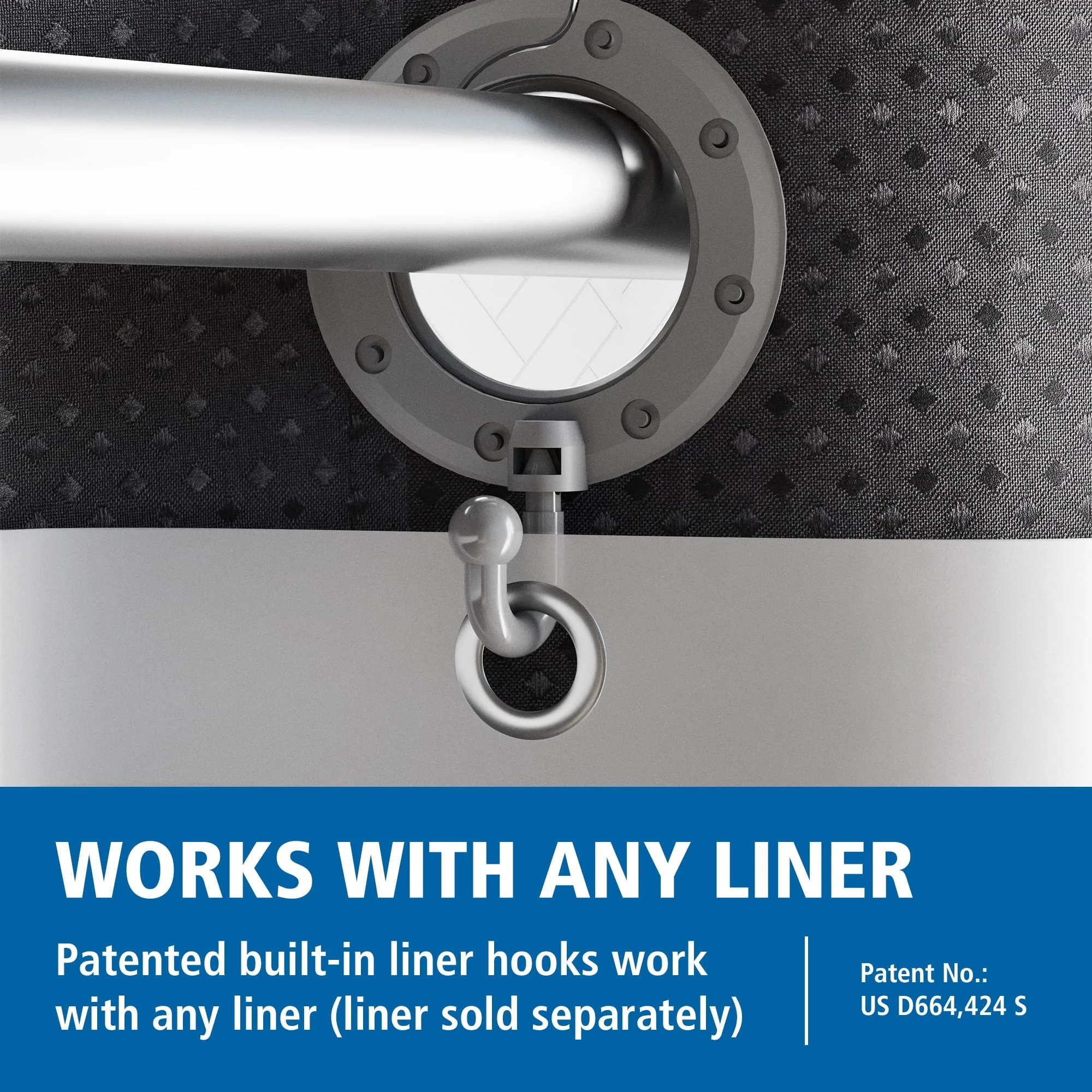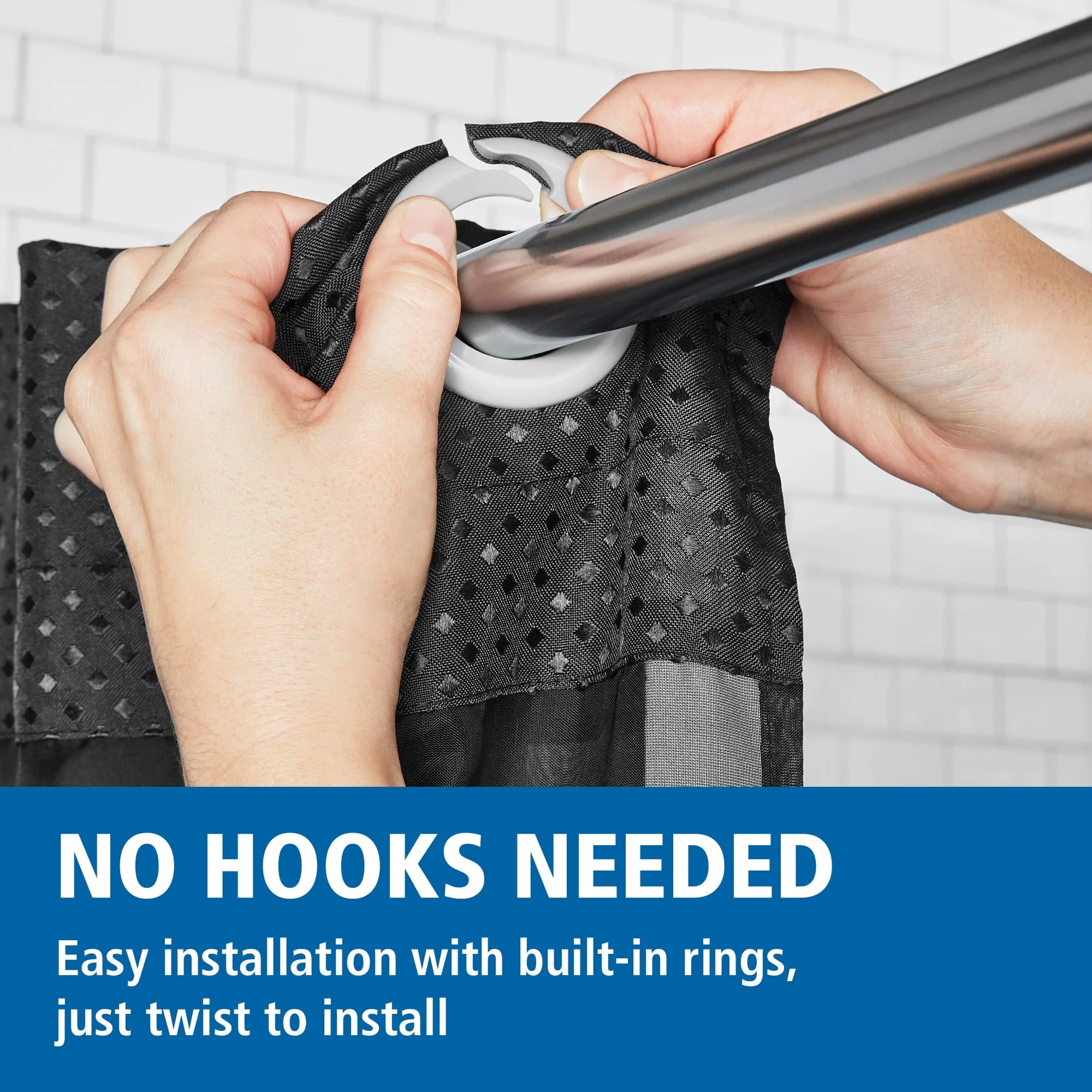 Simplify your bathroom setup with this Easy Hang Fabric Shower Curtain, featuring convenient built-in rings for effortless installation. Its durable fabric provides privacy and style while allowing smooth, tangle-free movement along the rod.