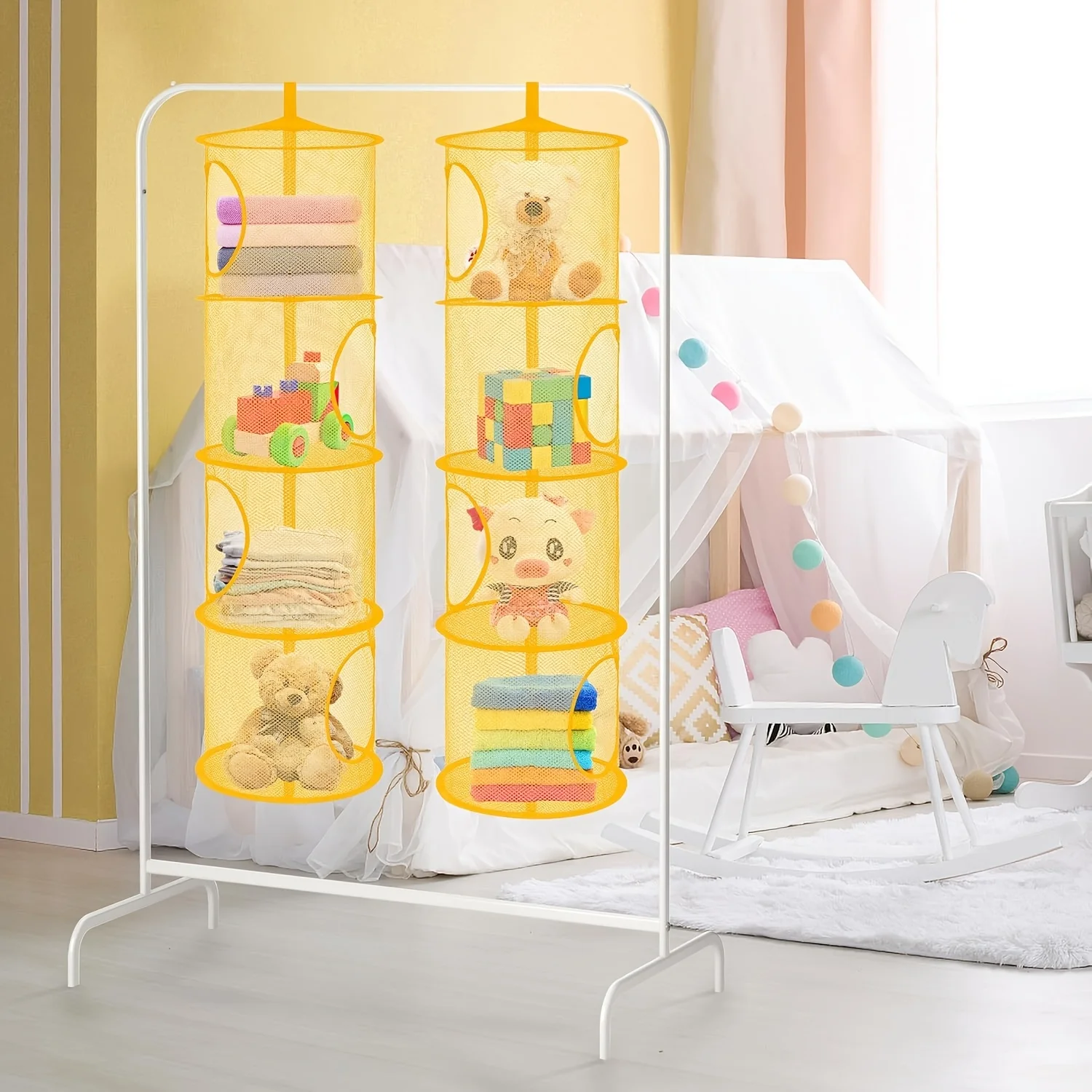 Maximize your storage space with this foldable 4-layer mesh hanging organizer. Made from breathable polyester mesh, it keeps your items ventilated while preventing clutter. Ideal for storing underwear, plush toys, gadgets, and other household essentials, this versatile organizer is perfect for bedrooms, closets, or dorm rooms.