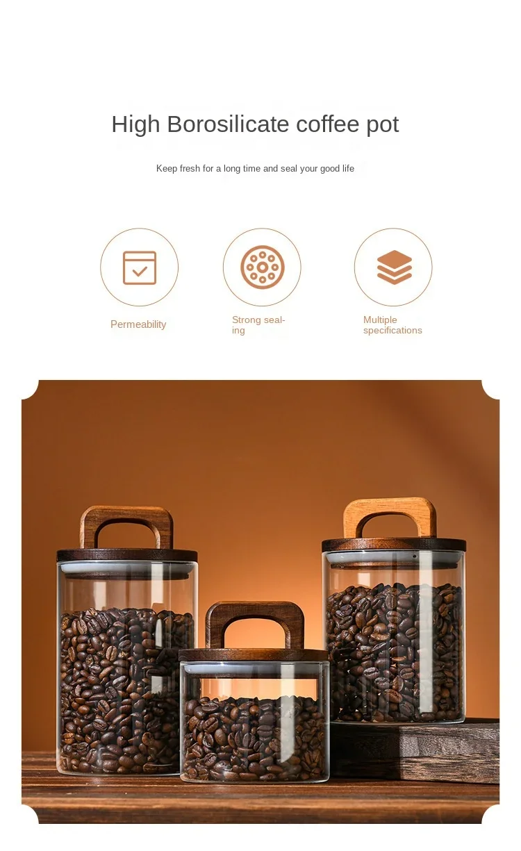 Keep your food and coffee fresh with this airtight glass jar featuring a wooden lid. With a capacity of 700–2100ml, it’s ideal for storing coffee beans, dry goods, or pantry staples in a stylish and practical way.