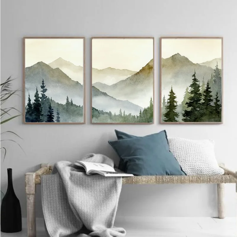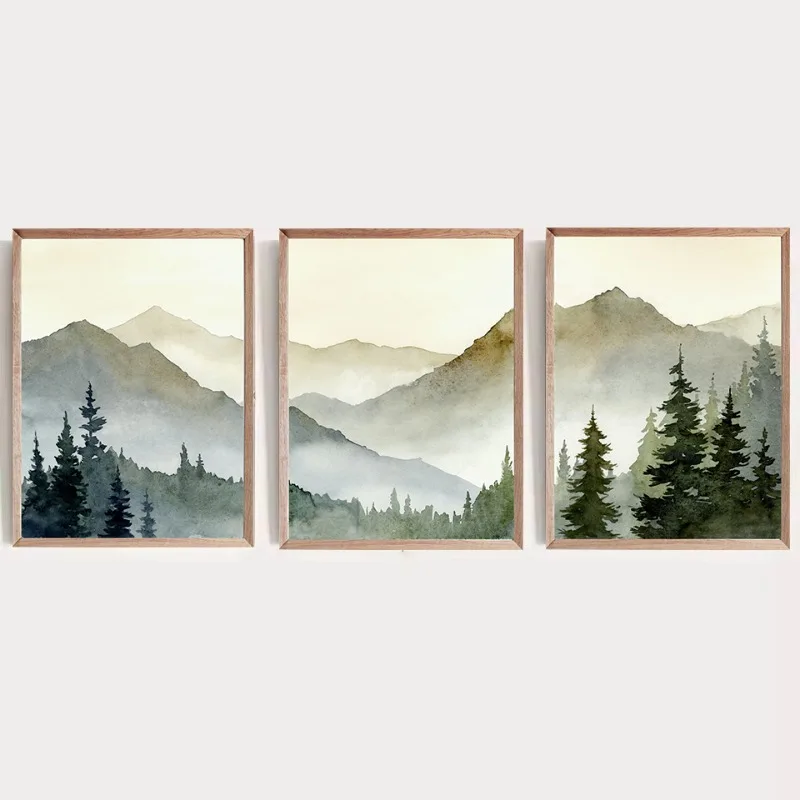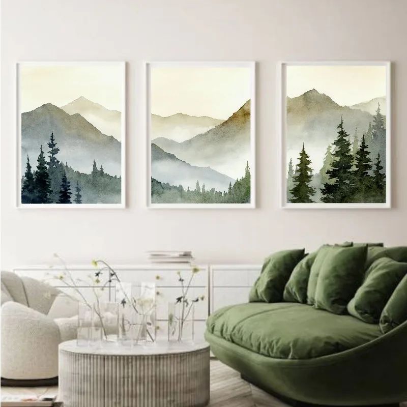 Bring the beauty of nature into your home with this Sunset Green Mountain Watercolor Canvas Art Print. Featuring a serene mountain landscape surrounded by pine trees and bathed in warm sunset tones, this artwork captures the peaceful essence of the great outdoors. The soft watercolor texture and rustic charm make it perfect for cozy living rooms, bedrooms, or cabins. Printed on high-quality canvas, it combines natural beauty with artistic elegance, adding depth and tranquility to any space. Ideal for nature lovers and rustic home interiors, this piece brings a calming, timeless touch of the wilderness to your decor.