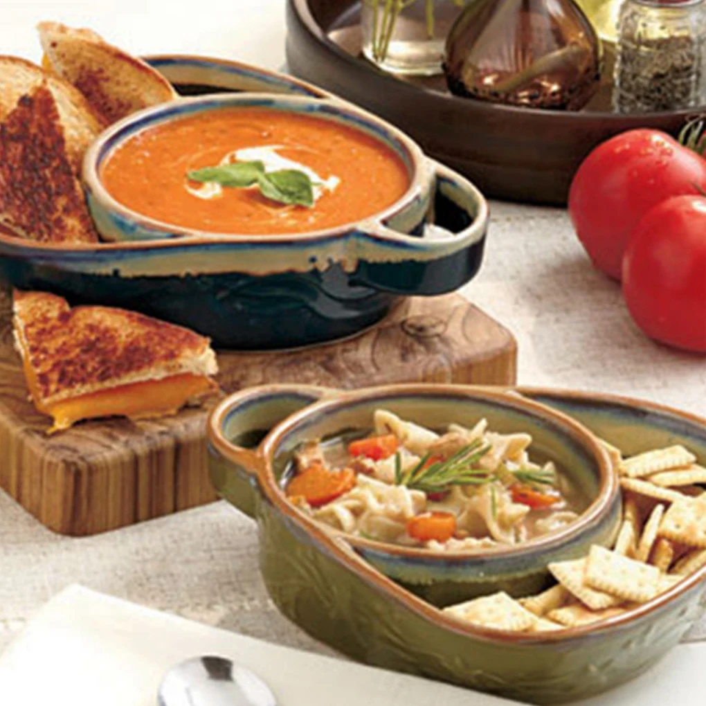 Enjoy versatile dining with this Heat-Resistant Ceramic Soup & Sandwich Bowl. Featuring a unique gridded design and convenient handles, it’s perfect for serving soups, sandwiches, salads, or snacks with ease.