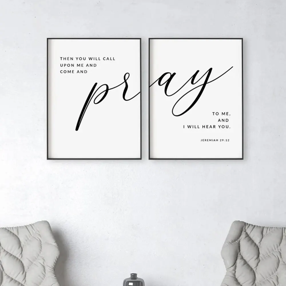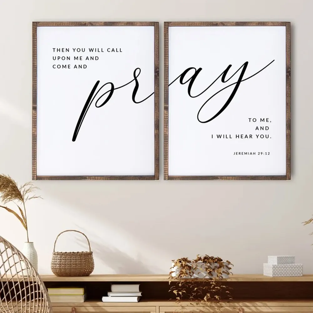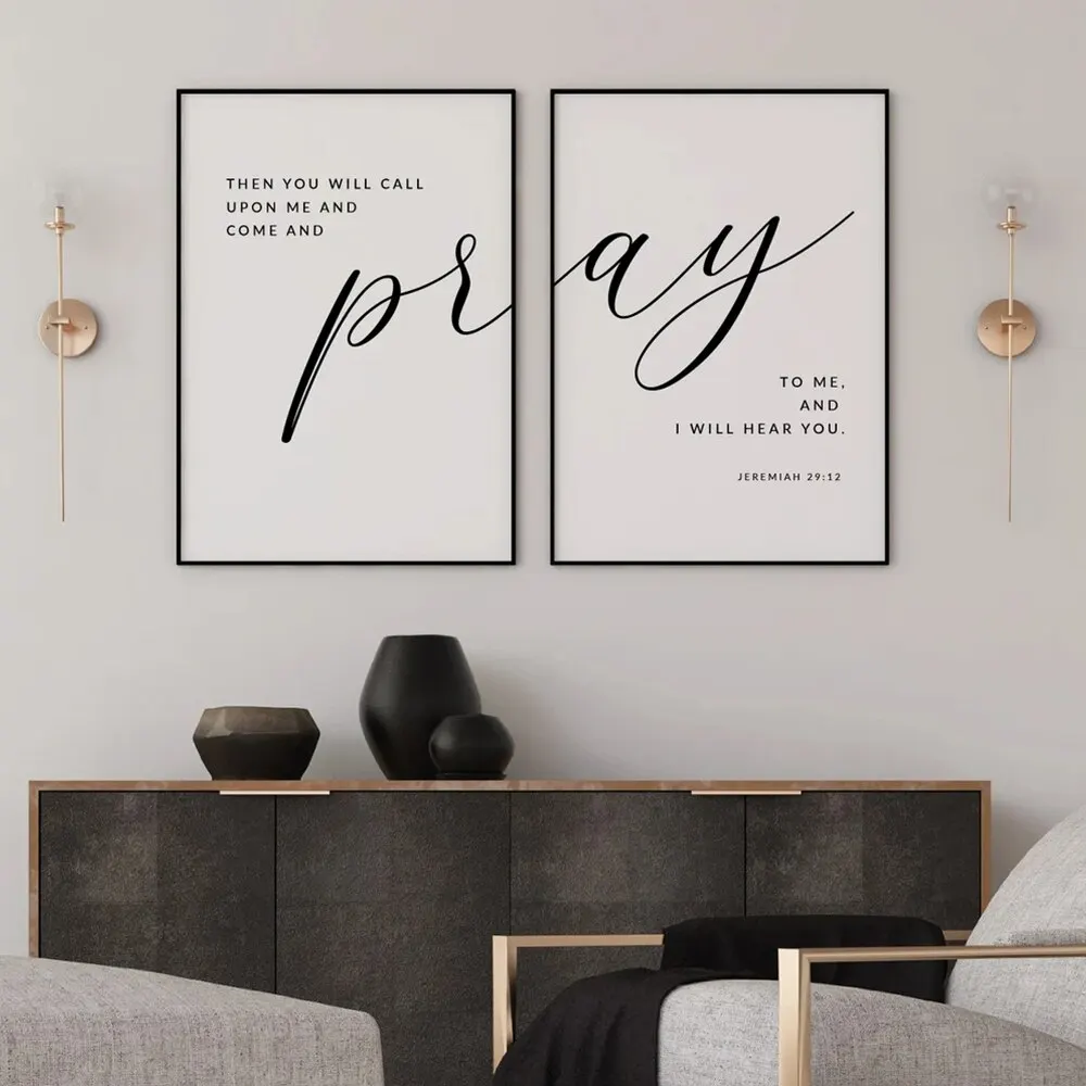 Bring faith and elegance into your home with our Modern Black Jeremiah 29:12 “Pray To Me” Bible Verse Wall Art. This beautifully designed scripture canvas features the inspiring words from Jeremiah 29:12 — “Then you will call on me and come and pray to me, and I will listen to you.”
