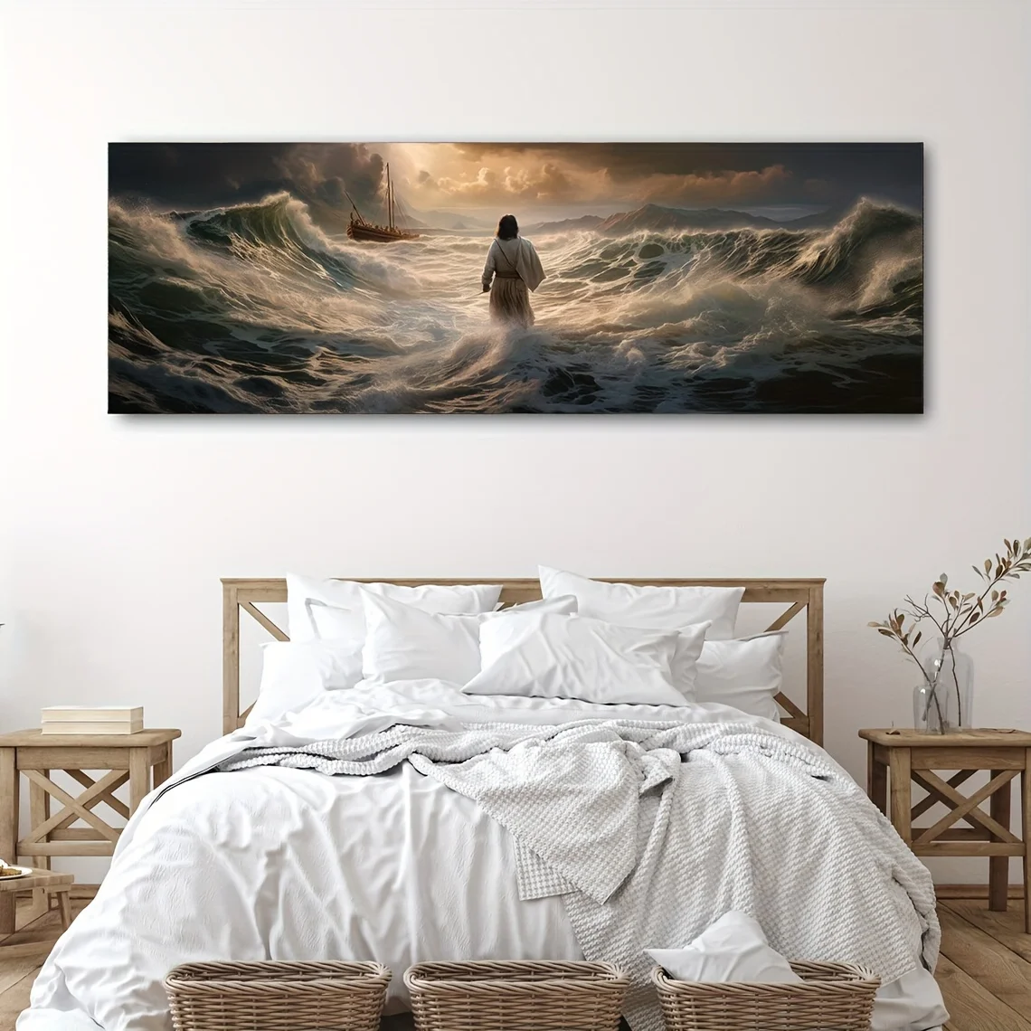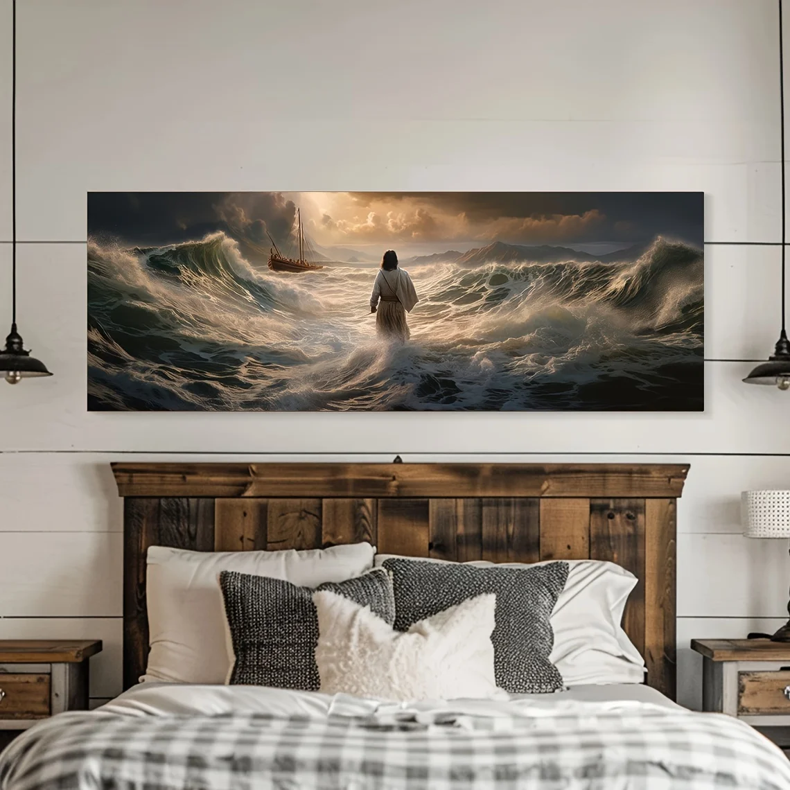 Celebrate faith and divine inspiration with our 1PC Jesus Walking on Water Canvas Art Print. This timeless piece beautifully depicts one of the most miraculous moments in the Bible — Jesus walking on the sea, symbolizing faith, courage, and unwavering trust in God.