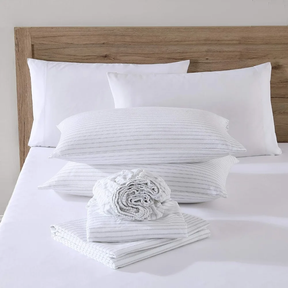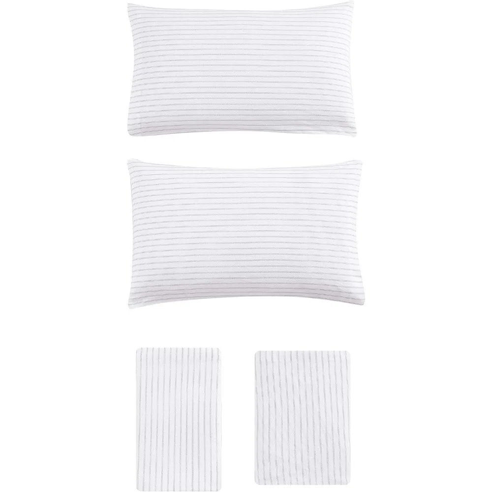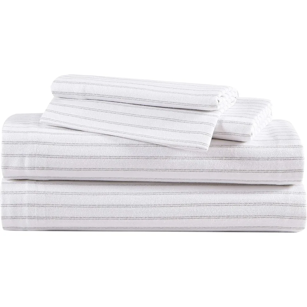 This 4-piece set includes a deep pocket fitted sheet, a flat sheet, and two matching pillowcases, ensuring a secure and snug fit for your mattress. The breathable cotton fabric provides natural temperature regulation, while the durable weave resists pilling and maintains its softness wash after wash.
