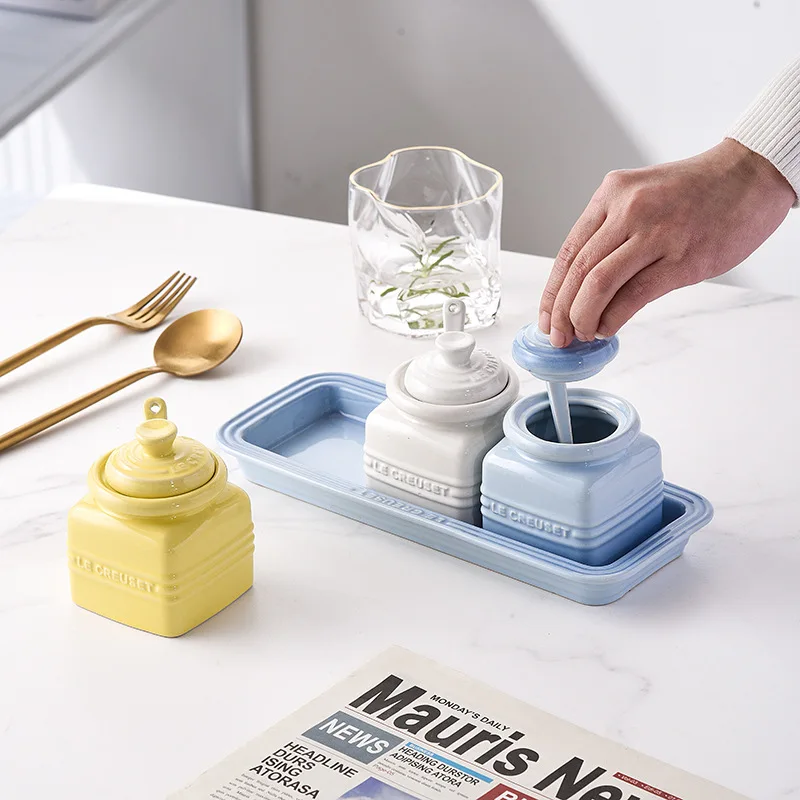 Crafted from durable ceramic, these jars are both functional and charming, adding a pop of color and elegance to your kitchen countertop. Ideal for home cooks and culinary enthusiasts, this set makes seasoning storage neat, convenient, and visually appealing.