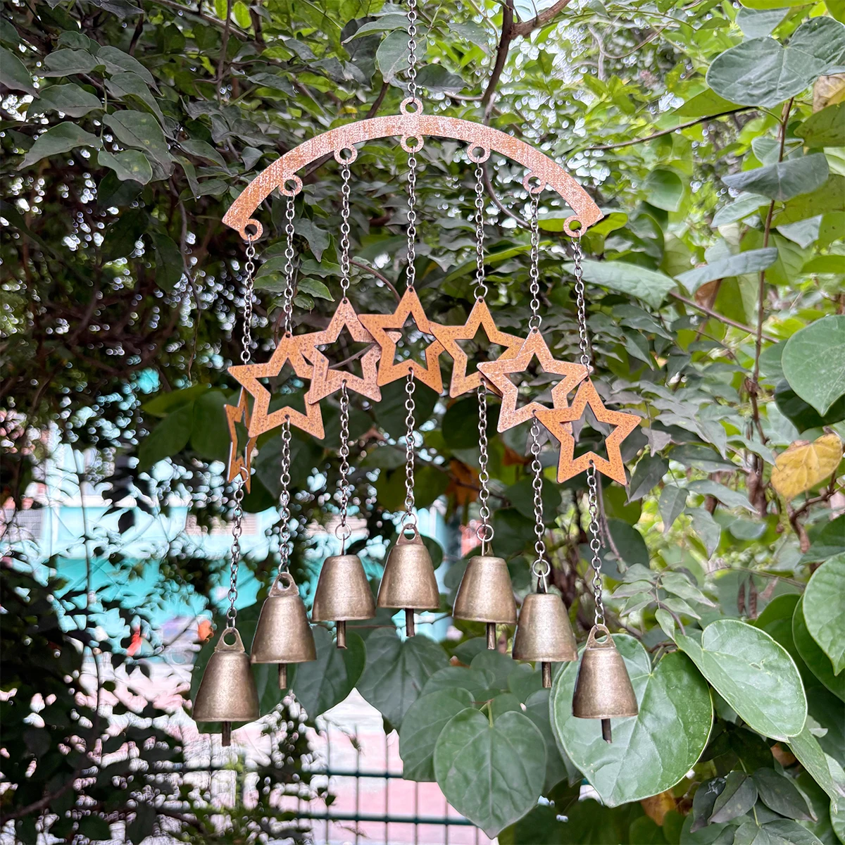 Add artistic charm and calming sounds to your outdoor space with this metal iron art wind chime. Designed for balconies, courtyards, and gardens, it combines decorative beauty with a soothing, melodic tone that enhances relaxation.