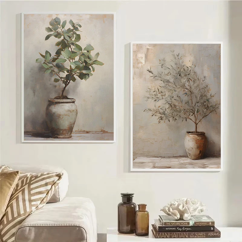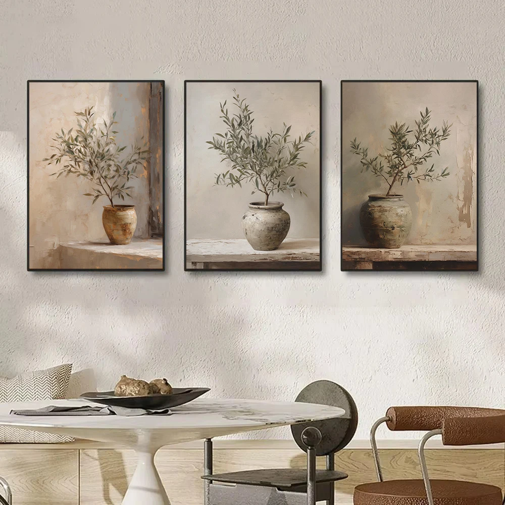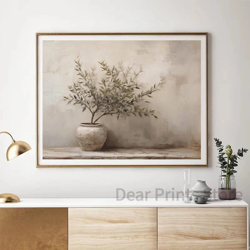 Add timeless charm and natural beauty to your space with the Rustic Hydrangeas, Olive Tree, and Ficus in Vase Vintage Still Life Canvas Poster. This elegant artwork captures the serene beauty of nature through a classic still life composition featuring lush hydrangeas, olive branches, and ficus leaves arranged in rustic vases. With its warm tones and vintage aesthetic, it brings a sense of comfort and sophistication to your living room, dining room, kitchen, or entryway.