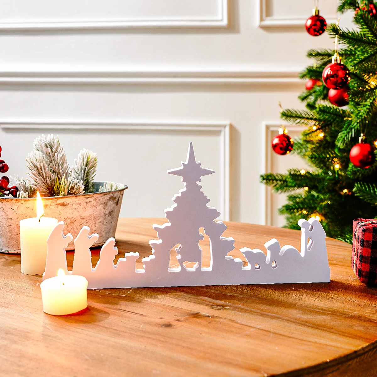 Celebrate the beauty of Christmas with this Creative White Nativity Silhouette Decorative Item. Crafted with simplicity and elegance, this piece features a minimalist white snowflake board design depicting the Holy Family in a serene silhouette style. Its clean and modern look makes it a perfect tabletop or desktop decoration for your home, office, or church during the holiday season. This charming ornament captures the true spirit of Christmas while adding a touch of peace and purity to your festive décor. Ideal as a gift for friends, family, or believers, it’s a timeless reminder of faith and love.