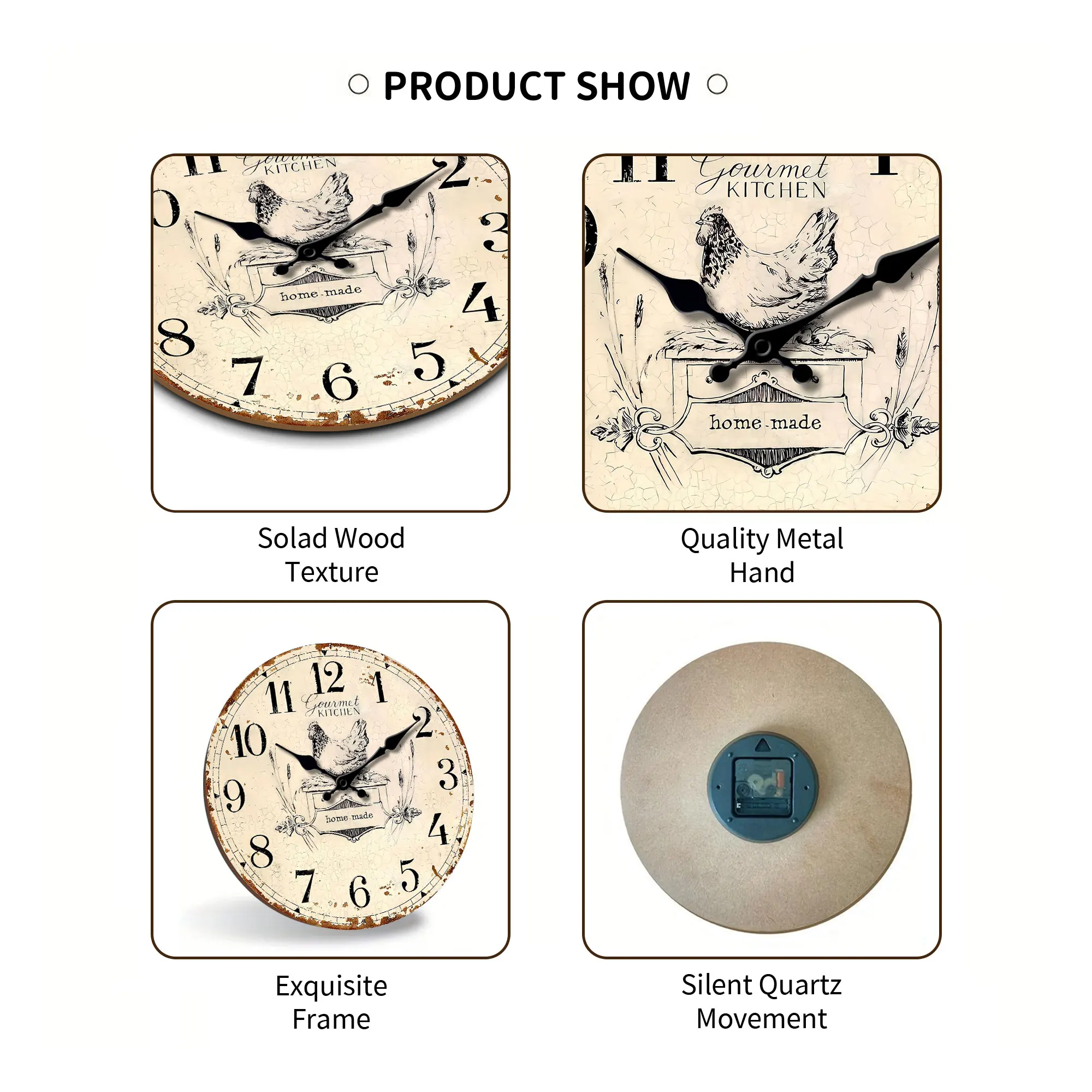Add rustic charm to your home with this Vintage Hen Wooden Wall Clock. Featuring a classic hen design, this round wooden clock is perfect for kitchens, living rooms, or bedrooms, bringing a touch of farmhouse style to your décor.