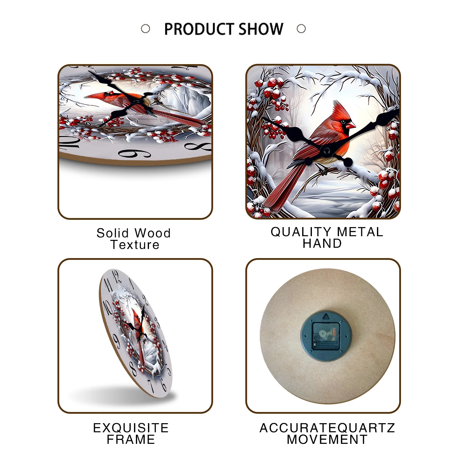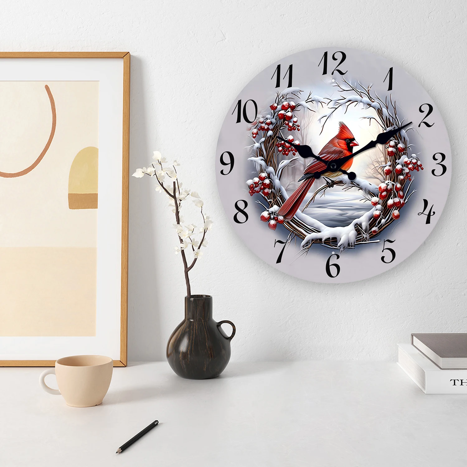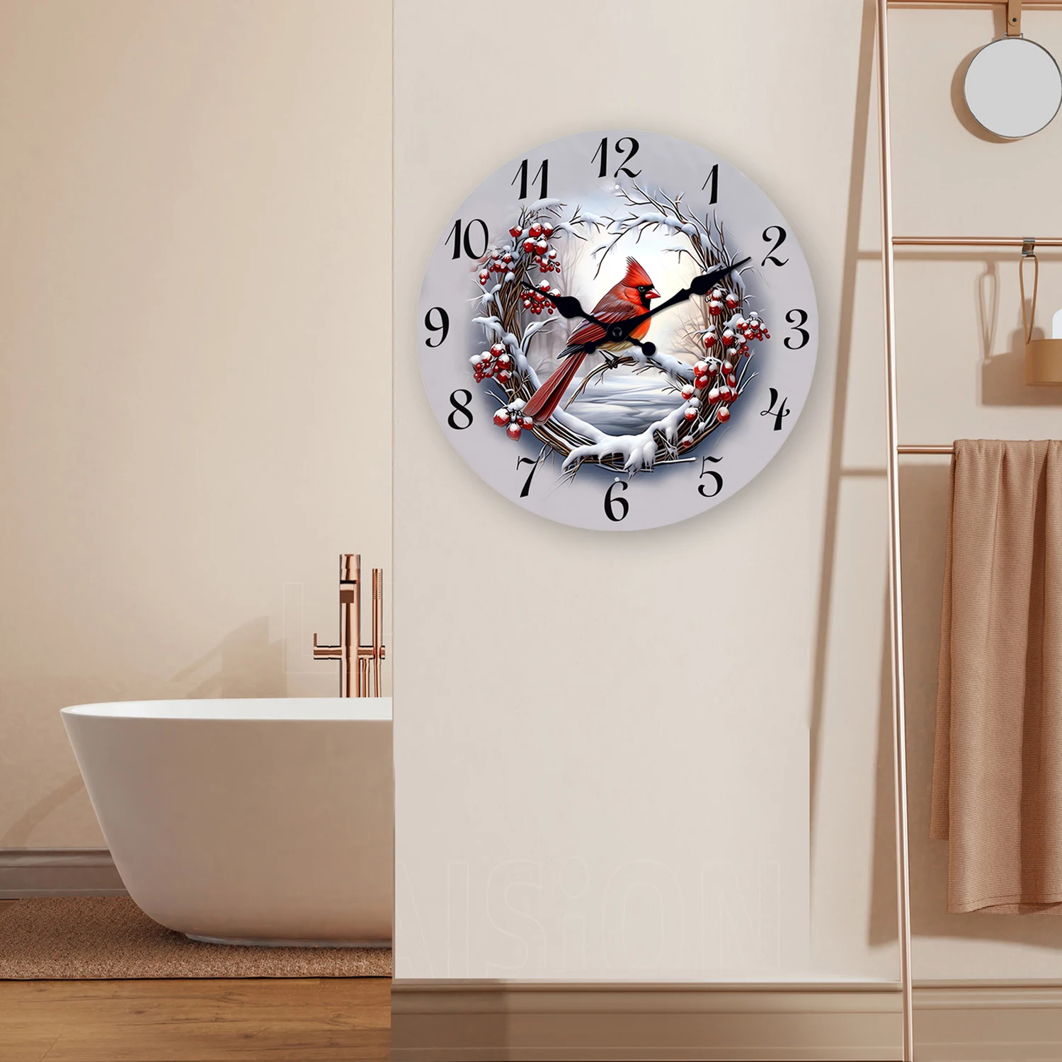 Add a touch of seasonal charm to your home with this Winter Cardinals Wooden Wall Clock. Featuring a beautiful watercolor design of winter cardinals, this clock brings elegance and a cozy feel to living rooms, bedrooms, or any indoor space.