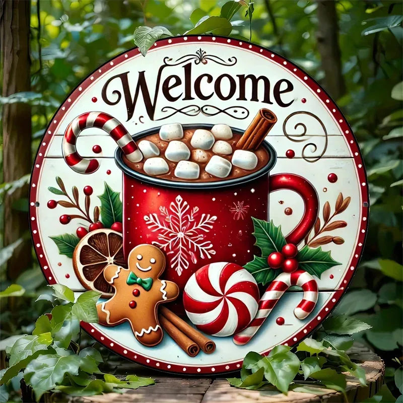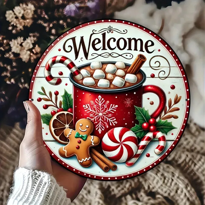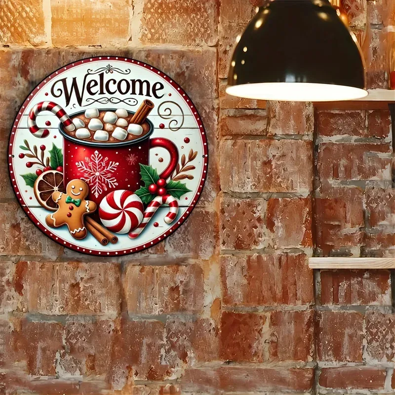 Welcome the holiday spirit into your home with this charming Wooden Christmas Welcome Sign. Measuring 8×8 inches, this round decorative plate features delightful gingerbread designs and festive holiday wreath accents, creating a cozy and cheerful seasonal vibe. Crafted from high-quality wood, it’s durable, lightweight, and perfect for hanging on walls, doors, entryways, or rooms. This rustic Christmas wall decor adds a warm touch to your living room, kitchen, or office, making it an ideal accent for any farmhouse or holiday-themed home. A perfect Christmas gift or decoration to spread festive joy all season long.